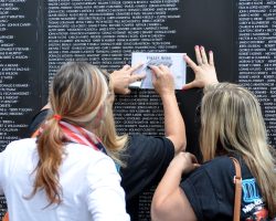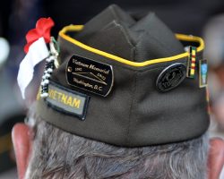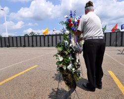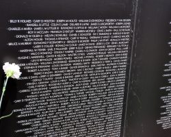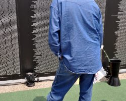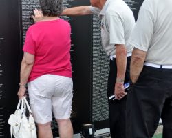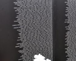 An unidentified man respectfully looks at the Vietnam Veterans Memorial Wall at the Cost of Freedom.