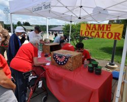 Volunteers work tirelessly at the Name Locator tent.